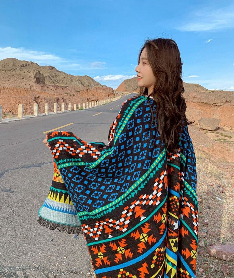 Winter Gypsy/Bohemian Floral Knitted Poncho with Tassels