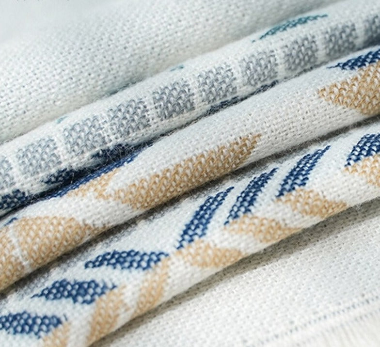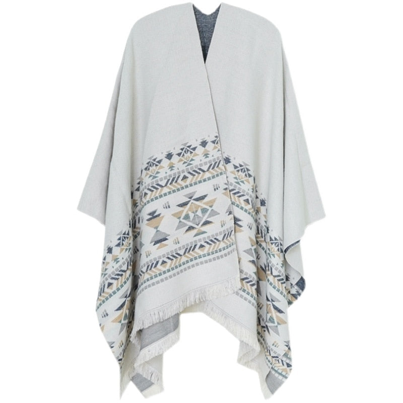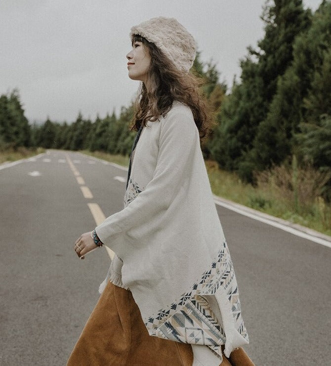 Winter Gypsy/Boho Floral Knitted Poncho Cape with Vintage Aztec Stripe