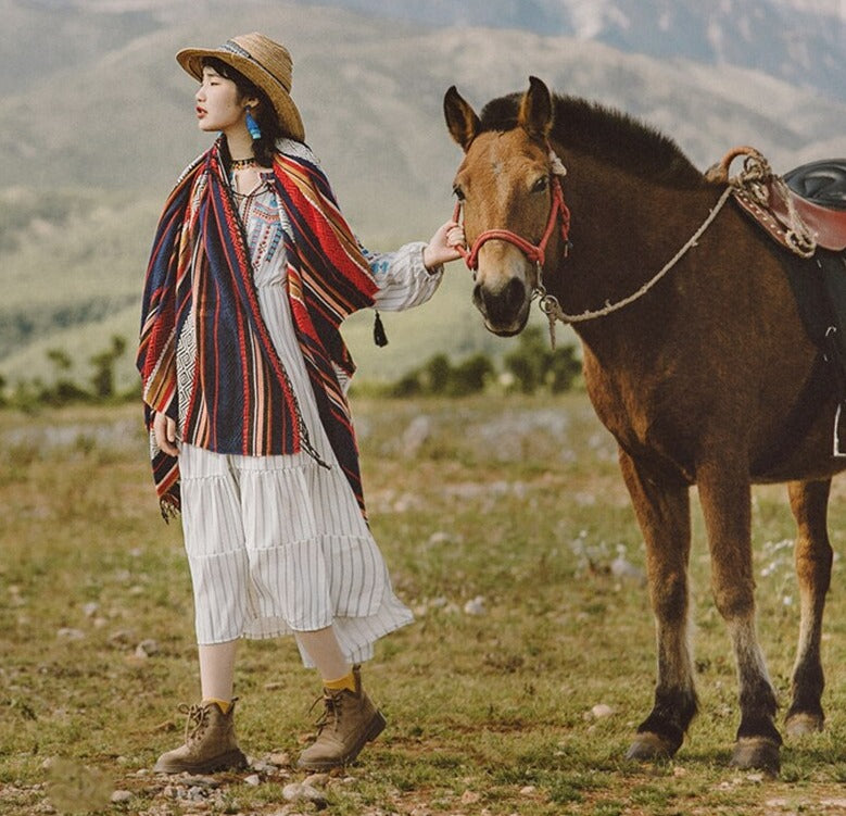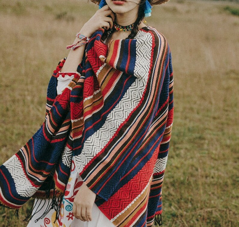 Winter Gypsy/ Boho Floral Knitted Poncho Capes with Tassels