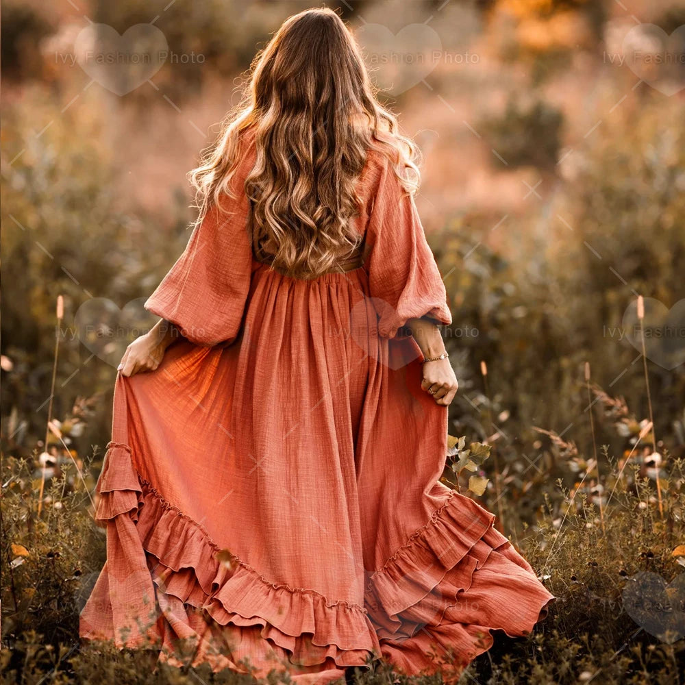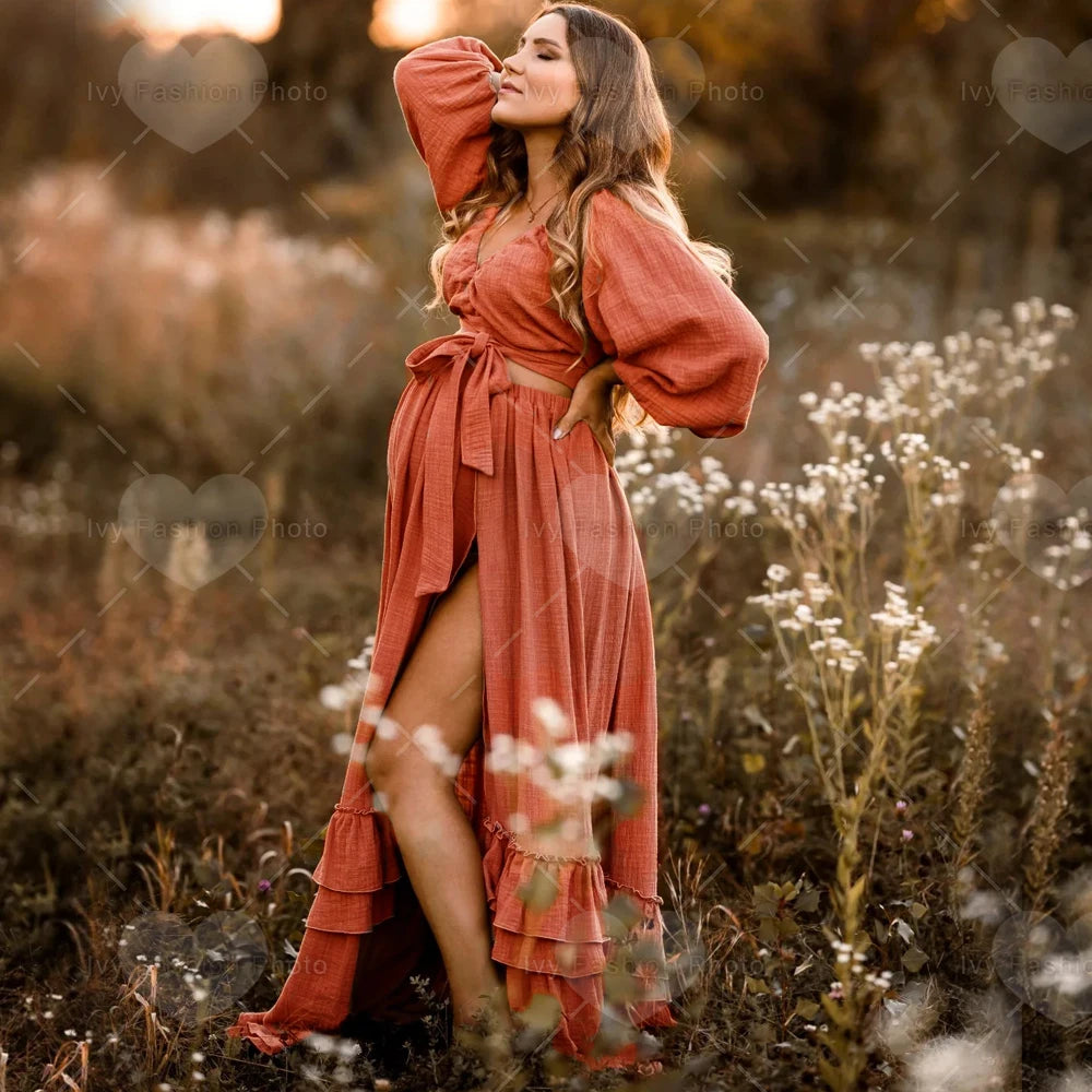 Linen Cotton Pregnancy Dress For Photo Shoot Two Piece Set Cotton Pregnant Women Baby Shower Dress Boho Maternity Gown